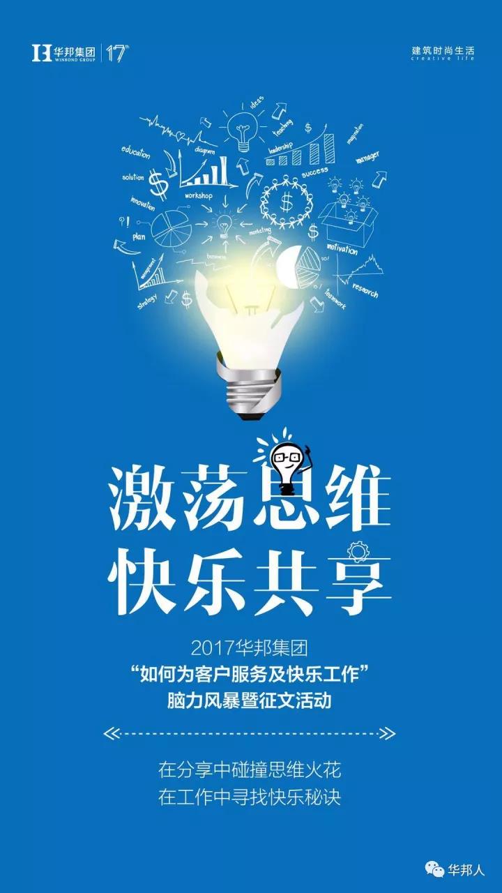 2017年10月,華邦集團(tuán)開展了“如何為客戶服務(wù)及快樂工作”兩大命題的討論活動(dòng),華邦集團(tuán)12個(gè)項(xiàng)目公司/專業(yè)公司及集團(tuán)總部11個(gè)職能中心共開展了23場(chǎng)頭腦風(fēng)暴,大家圍繞這兩大命題,結(jié)合自身工作展開頭腦風(fēng)暴,每一位參與者都踴躍發(fā)言、激烈討論。